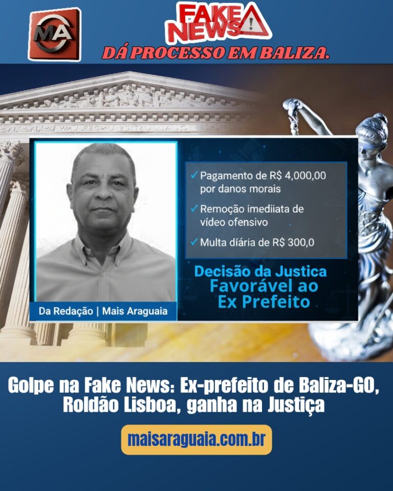 Da Redação | Mais Araguaia A Justiça da Comarca de Aragarças proferiu sentença reconhecendo que o ex-prefeito de Baliza-GO, Roldão Lisboa do Carmo, foi vítima