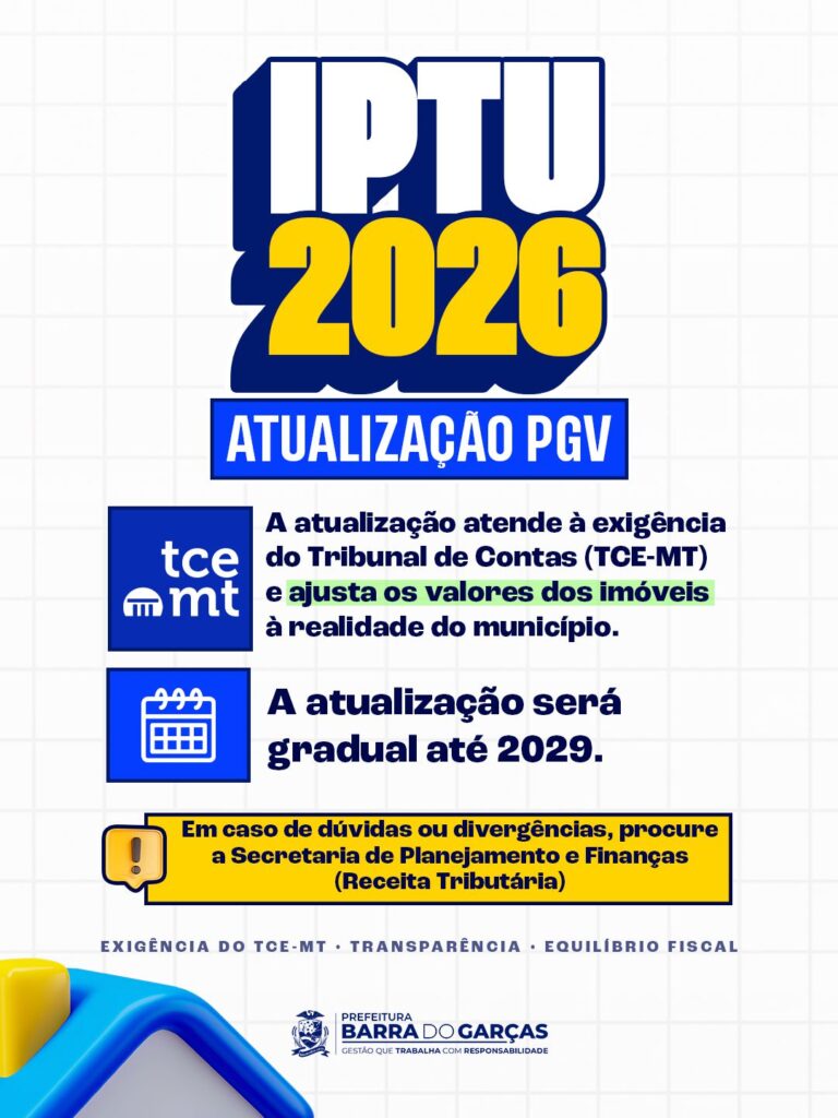 Secom-BG Neste ano, a Prefeitura de Barra do Garças colocou em vigor a nova Planta Genérica de Valores (PGV) do município. A medida atende às
