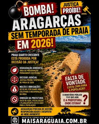 JUSTIÇA PROÍBE TEMPORADA DE PRAIA 2026 NA PRAIA QUARTO CRESCENTE EM ARAGARÇAS-GO