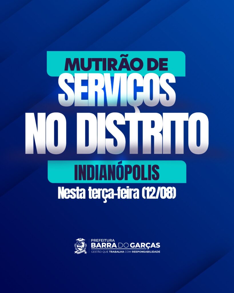 Secom-BG Na próxima semana, a Prefeitura de Barra do Garças realizará um Mutirão de Serviços no Distrito de Indianópolis, através do projeto Secretaria Itinerante. A iniciativa envolve as secretarias de Infraestrutura e Serviços, Desenvolvimento Econômico, Assistência Social, Educação, Saúde, Desenvolvimento Urbano, Meio Ambiente e Sustentabilidade, levando diversos serviços e ações até a população. A partir […]