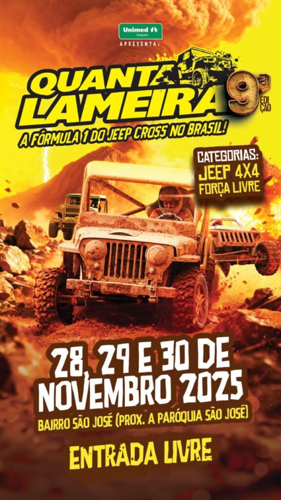 A contagem regressiva já começou para um dos eventos off-road mais tradicionais e aguardados do Araguaia. Nos dias 28, 29 e 30 de novembro, o Bairro São José será palco da 9ª Edição do Quanta Lameira, reunindo pilotos, equipes e entusiastas do Jeep Cross em uma programação marcada por adrenalina, manobras radicais e muita lama.