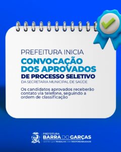 Secom-BG A prefeitura de Barra do Garças deu início à convocação dos candidatos aprovados no processo seletivo da Secretaria Municipal de Saúde. A medida visa