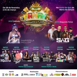Secom-BG O Carnaval “Encanto e Magia”, em Barra do Garças, inicia hoje (28), com abertura a partir das 22h, no Porto do Baé. Com entrada