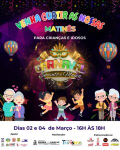 Secom – BG A Prefeitura de Barra do Garças, por meio da Secretaria Municipal de Cultura e Turismo, realizará dois dias de matinês durante o
