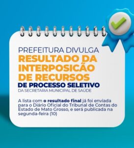Secom-BG Nesta sexta-feira (7), a Prefeitura de Barra do Garças, através da Secretaria Municipal de Saúde, divulgou o resultado do recurso do processo seletivo simplificado