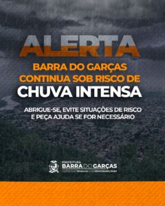 A Prefeitura de Barra do Garças, por meio da Defesa Civil, informa que há previsão de chuvas intensas nos próximos dias, podendo alcançar volumes de