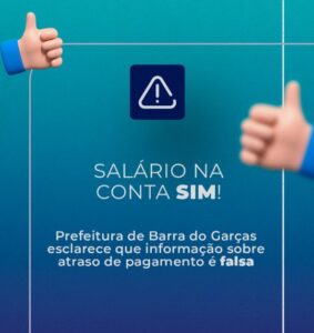 Informações sobre atraso de pagamento é falsa, esclarece Prefeitura de Barra do Garças A folha de pagamento dos servidores do município foi paga ontem (31).