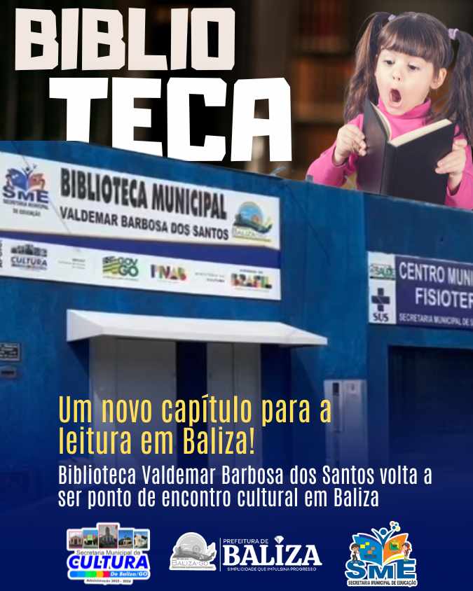 A Prefeitura de Baliza, por meio da Secretaria Municipal de Cultura e da Secretaria Municipal de Educação, está reativando e revitalizando a Biblioteca Municipal Valdemar Barbosa dos Santos, que voltará a ser um importante centro de incentivo à leitura e de convivência cultural no município.