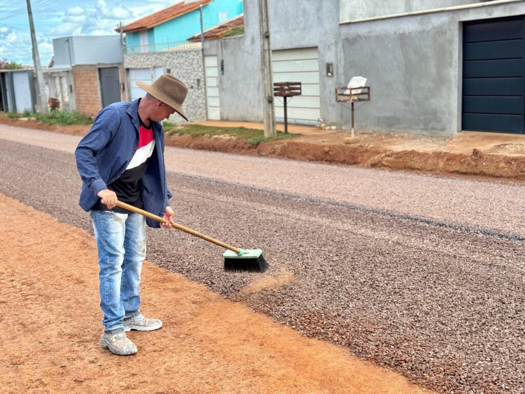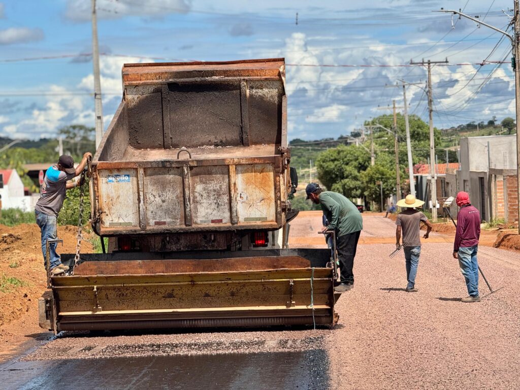 Atualmente, as equipes já realizam a capa asfáltica no trecho em obras da avenida Brasil, que consiste na aplicação de uma camada de brita e ligante asfáltico, preparando a via para o revestimento final.