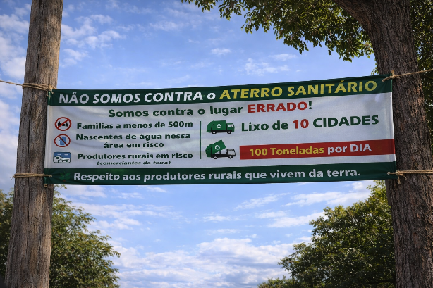 Segundo os manifestantes, o posicionamento não é contrário ao aterro sanitário, mas sim ao local escolhido para implantação do empreendimento. Entre os principais pontos de preocupação estão a proximidade de famílias que vivem a menos de 500 metros da área prevista, a existência de nascentes de água consideradas sensíveis, além do impacto potencial decorrente do recebimento de resíduos provenientes de 10 municípios, estimados em cerca de 100 toneladas de lixo por dia.