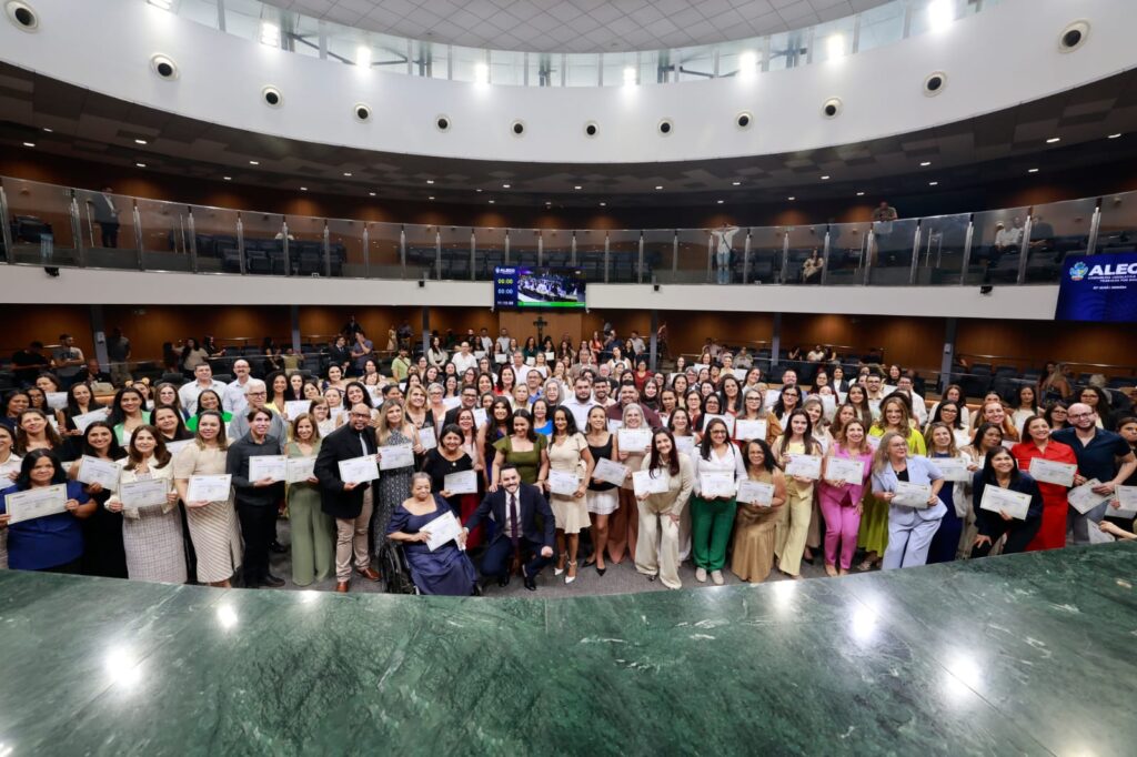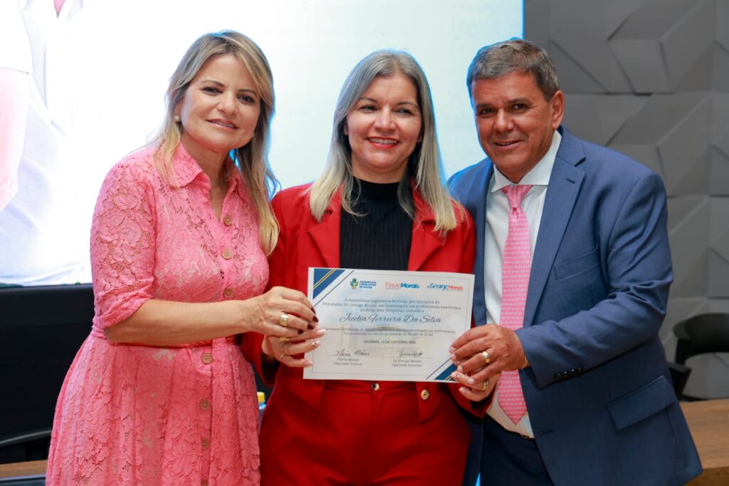 A cerimônia reconheceu a contribuição desses profissionais na execução do Programa Despertar, iniciativa criada por George Morais em parceria com a deputada federal Flávia Morais (PDT), que tem como objetivo o rastreamento e a prevenção do câncer de tireoide em todo o Estado.