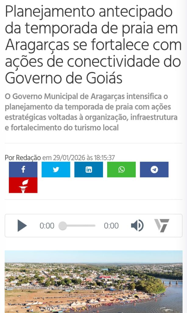 A manchete oficial; “Planejamento antecipado da temporada de praia em Aragarças se fortalece com ações de conectividade do Governo de Goiás”; parece roteiro de comédia. Planejamento antecipado de quê, exatamente? Da ausência? Da interdição? Ou da memória afetiva de uma praia que hoje só sobrevive em fotos antigas e discursos otimistas?